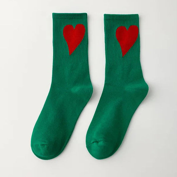 • Crew-length socks with bold heart motif